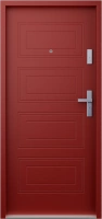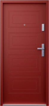 Drzwi wewnątrzklatkowe akustyczne wyciszające 47 dB z Certyfikatem antywłamaniowe RC3 55 mm stalowe z tłoczeniami z klamką inox srebrną czerwone T34