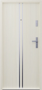 Drzwi wewnątrzklatkowe akustyczne wyciszające 47 dB z Certyfikatem antywłamaniowe RC3 55 mm stalowe z klamką czarną i aplikacjami beżowe A7