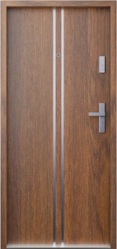 Drzwi wewnątrzklatkowe akustyczne wyciszające 47 dB z Certyfikatem antywłamaniowe RC3 55 mm stalowe z klamką inox srebrną i aplikacjami złoty dąb A7