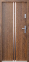 Drzwi wewnątrzklatkowe akustyczne wyciszające 47 dB z Certyfikatem antywłamaniowe RC3 55 mm stalowe z klamką inox srebrną i aplikacjami orzech A7