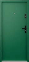 Drzwi wewnątrzklatkowe akustyczne wyciszające 47 dB z Certyfikatem antywłamaniowe RC3 55 mm stalowe gładkie z klamką inox srebrną zielone G00