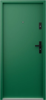 Drzwi wewnątrzklatkowe akustyczne wyciszające 47 dB z Certyfikatem antywłamaniowe RC3 55 mm stalowe gładkie z klamką czarną zielone G00