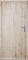 Drzwi wewnątrzklatkowe akustyczne wyciszające 47 dB antywłamaniowe RC3 55 mm stalowe z tłoczeniami z klamką inox srebrną dąb sonoma T34