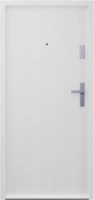 Drzwi wewnątrzklatkowe akustyczne wyciszające 47 dB antywłamaniowe RC3 55 mm stalowe gładkie z klamką inox srebrną biały drewnopodobny G00