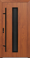 Drzwi zewnętrzne wejściowe do domu stalowo aluminiowe 82 mm DS82 przeszklone z czarnymi okuciami złoty dąb Program Czyste Powietrze M21