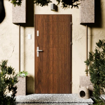Drzwi zewnętrzne muszą być trwałe. Skrzydło oraz ościeżnica pokryte są wysokiej jakości okleiną PCV. Jest ona odporna na działanie promieni UV, co zapobiega blaknięciu koloru nawet przy wieloletniej ekspozycji na słońce. Stalowa konstrukcja zapewnia sztywność i odporność na zmienne warunki atmosferyczne.