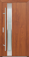 Drzwi zewnętrzne wejściowe do domu stalowo aluminiowe 82 mm DS82 przeszklone z okuciami inox złoty dąb Program Czyste Powietrze M05