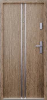 Drzwi klatkowe wejściowe do mieszkania w bloku wygłuszające 47 dB antywłamaniowe RC3 55 mm stalowe z klamką inox i aplikacjami dąb sonoma A7