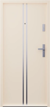Drzwi klatkowe wejściowe do mieszkania w bloku wygłuszające 47 dB antywłamaniowe RC3 55 mm stalowe z klamką inox srebrną i aplikacjami beżowe A7