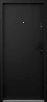 Drzwi wewnątrzklatkowe akustyczne wyciszające 47 dB z Certyfikatem antywłamaniowe RC3 55 mm stalowe gładkie z czarną klamką czarne G00