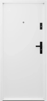Drzwi wewnątrzklatkowe akustyczne wyciszające 47 dB z Certyfikatem antywłamaniowe RC3 55 mm stalowe gładkie z klamką czarną białe struktura G00