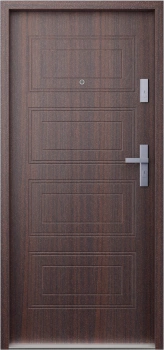 Drzwi wewnątrzklatkowe akustyczne wyciszające 47 dB z Certyfikatem antywłamaniowe RC3 55 mm stalowe z tłoczeniami z klamką czarną orzech T34