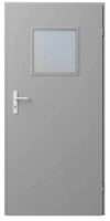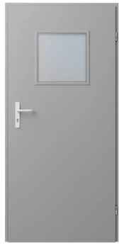 Drzwi techniczne 40 mm do pomieszczeń gospodarczych piwnicy garażu komórki WC boczne tylne z klamką z szybą satynową kwadratową szare