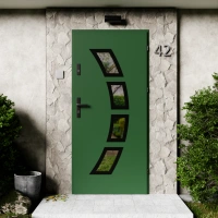 Drzwi zewnętrzne stalowe do domu Modern Inox 72mm z klamką energooszczędne Ud=1.3 przeszklone lustro weneckie szyba mleczna Program Czyste Powietrze