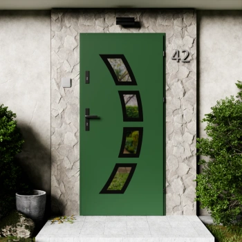 Drzwi zewnętrzne stalowe do domu Tinea Inox 72mm z klamką energooszczędne Ud=1.3 przeszklone lustro weneckie szyba mleczna Program Czyste Powietrze
