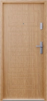 Drzwi wewnątrzklatkowe antywłamaniowe RC3 z Certyfikatem akustyczne wyciszające 47 dB 55 mm stalowe z tłoczeniami z klamką inox srebrną złoty dąb T34