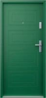 Drzwi wewnątrzklatkowe antywłamaniowe RC3 z Certyfikatem akustyczne wyciszające 47 dB 55 mm stalowe z tłoczeniami z klamką inox srebrną zielone T34
