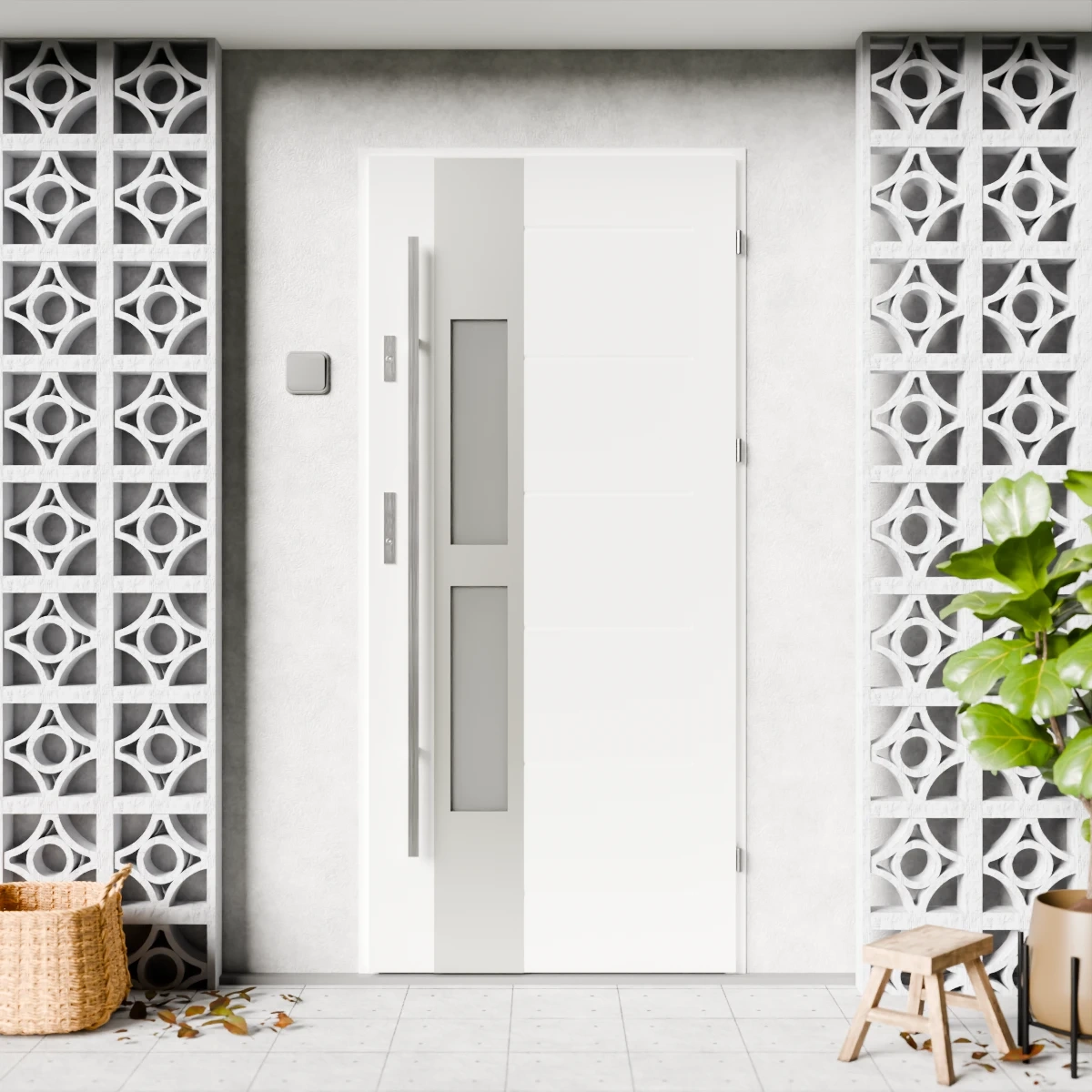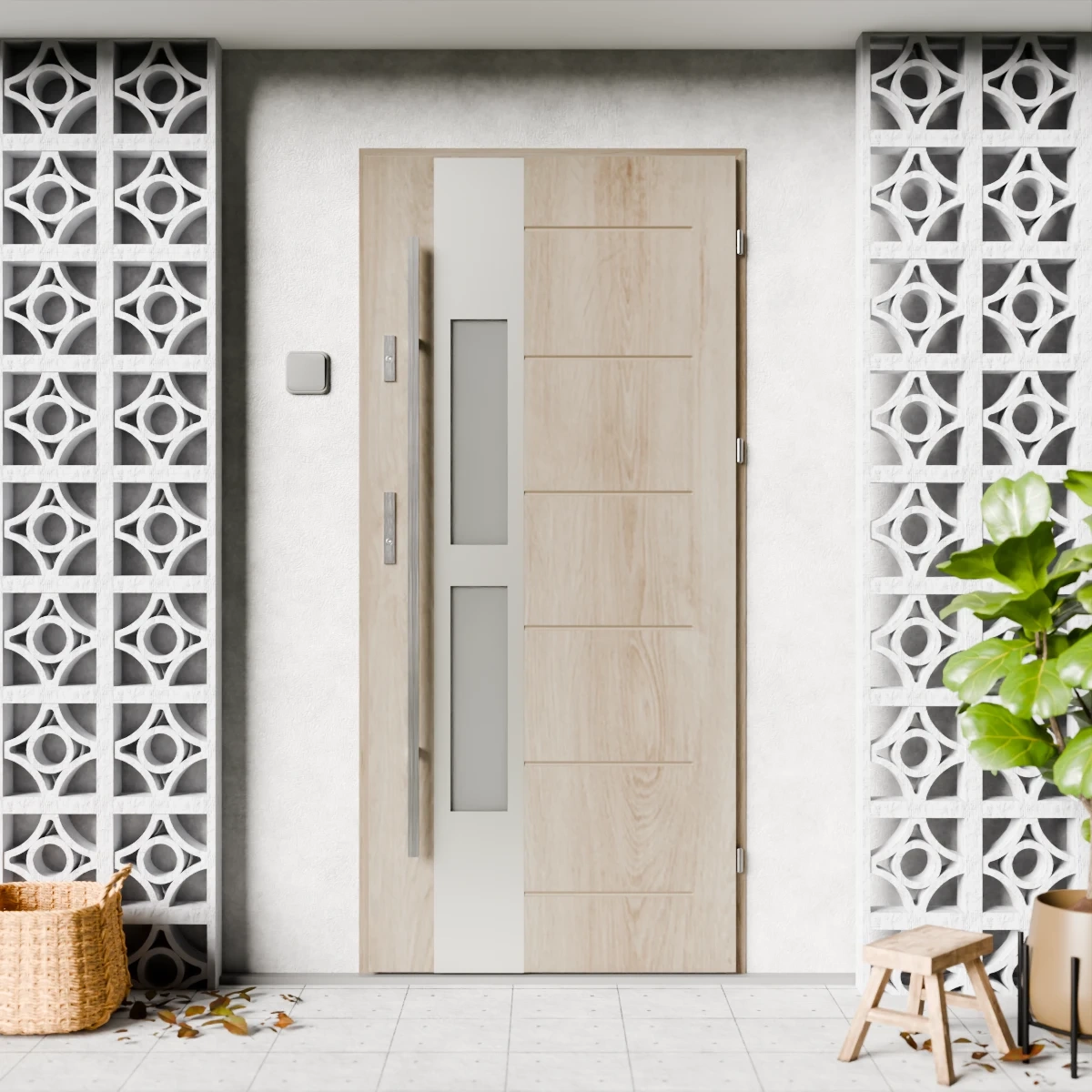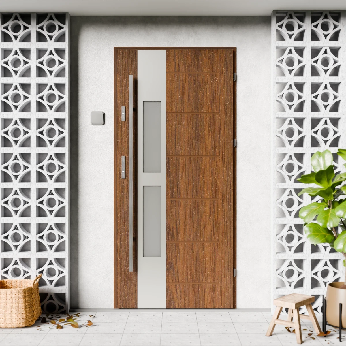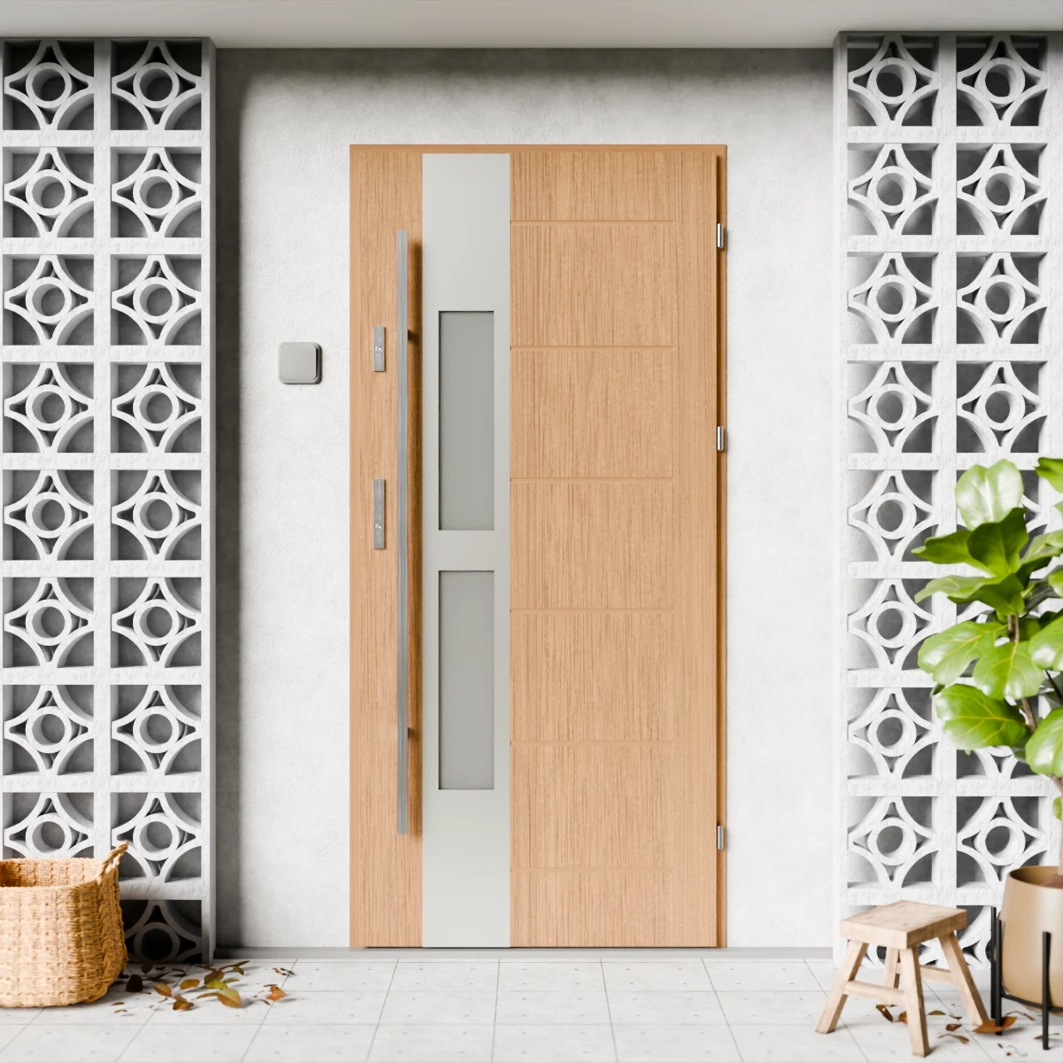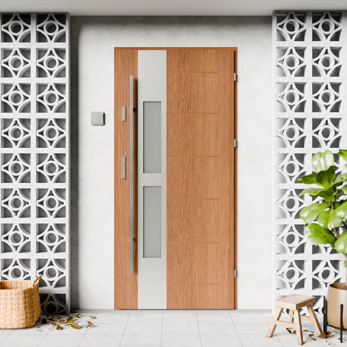 Dostępne w wielu wymiarach drzwi zewnętrzne będą idealnym wyborem nie tylko dla domów jednorodzinnych, ale także budynków wielorodzinnych, jako drzwi wejściowe zewnętrzne. Ponadczasowy design sprawdzi się zarówno w przypadku nowoczesnych nieruchomości, jak i nieco starszych obiektów, łącząc w sobie estetykę oraz niezwykłą trwałość.