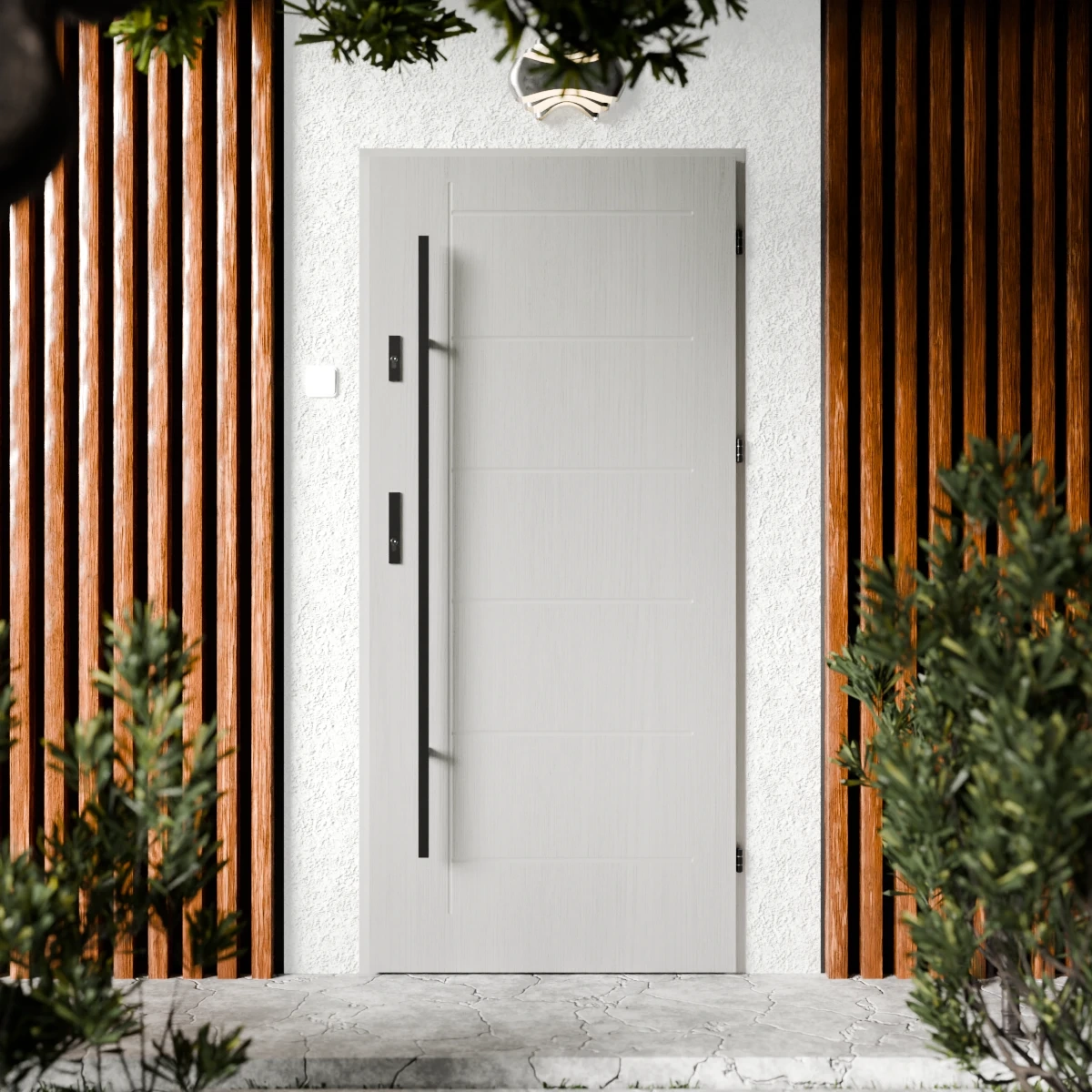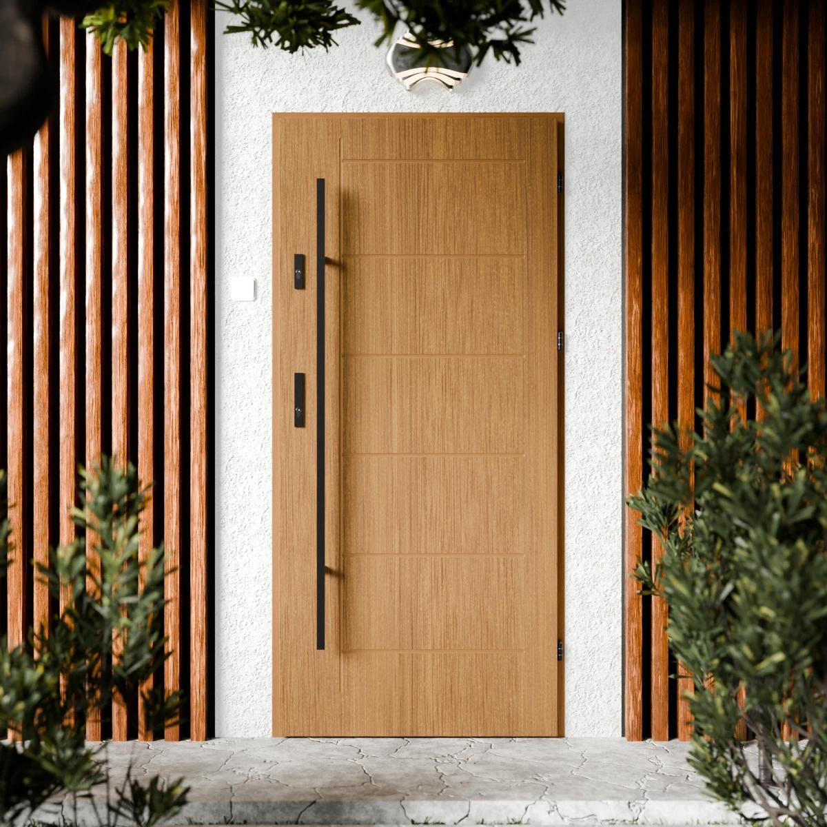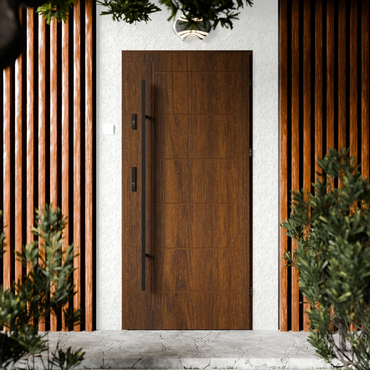 Dostępne w wielu wymiarach drzwi zewnętrzne będą idealnym wyborem nie tylko dla domów jednorodzinnych, ale także budynków wielorodzinnych, jako drzwi wejściowe zewnętrzne. Ponadczasowy design sprawdzi się zarówno w przypadku nowoczesnych nieruchomości, jak i nieco starszych obiektów, łącząc w sobie estetykę oraz niezwykłą trwałość.
