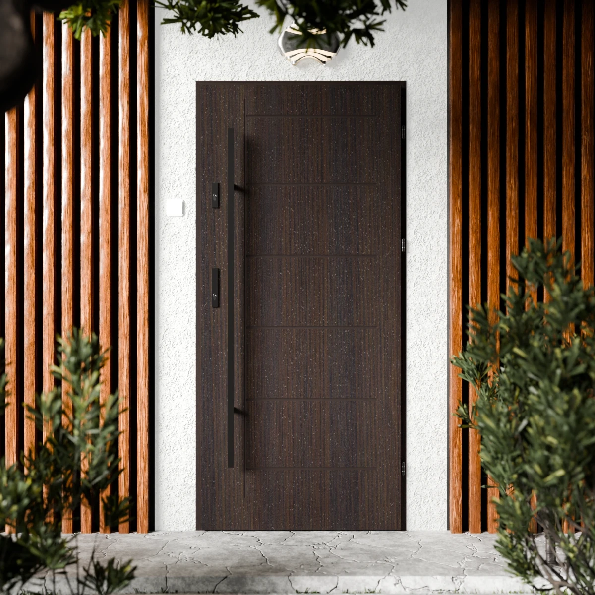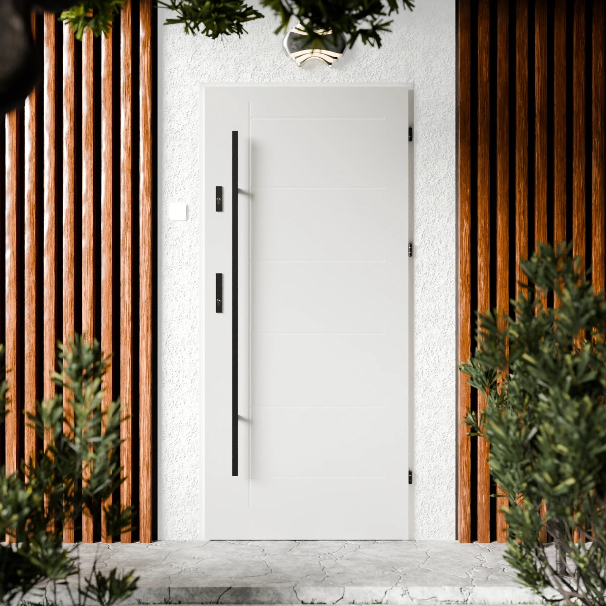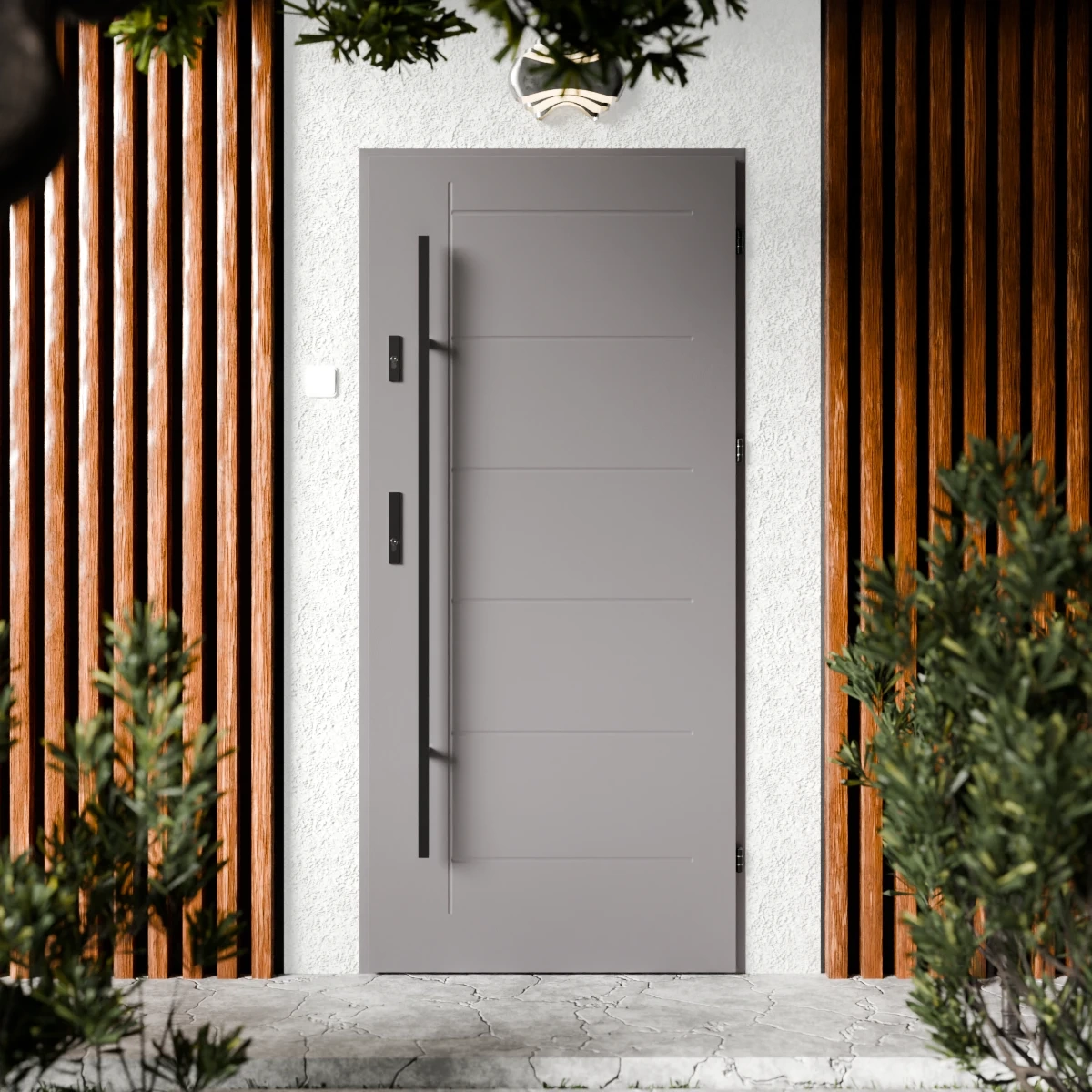 Dostępne w wielu wymiarach drzwi zewnętrzne będą idealnym wyborem nie tylko dla domów jednorodzinnych, ale także budynków wielorodzinnych, jako drzwi wejściowe zewnętrzne. Ponadczasowy design sprawdzi się zarówno w przypadku nowoczesnych nieruchomości, jak i nieco starszych obiektów, łącząc w sobie estetykę oraz niezwykłą trwałość.