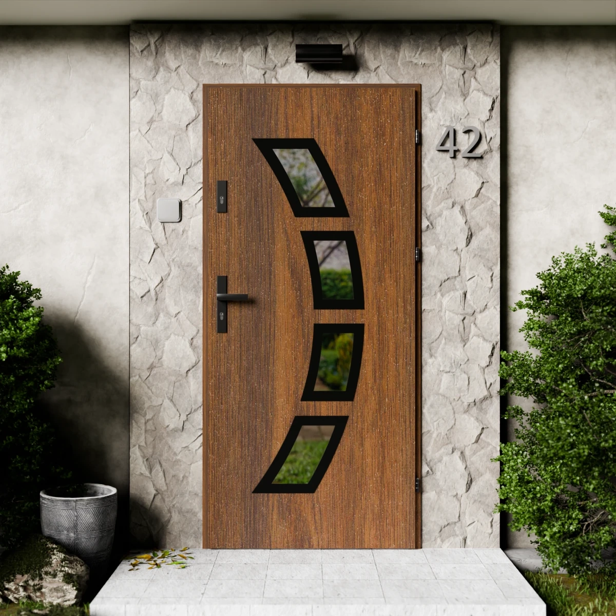 Dostępne w wielu wymiarach drzwi zewnętrzne będą idealnym wyborem nie tylko dla domów jednorodzinnych, ale także budynków wielorodzinnych, jako drzwi wejściowe zewnętrzne. Ponadczasowy design sprawdzi się zarówno w przypadku nowoczesnych nieruchomości, jak i nieco starszych obiektów, łącząc w sobie estetykę oraz niezwykłą trwałość.