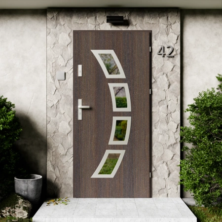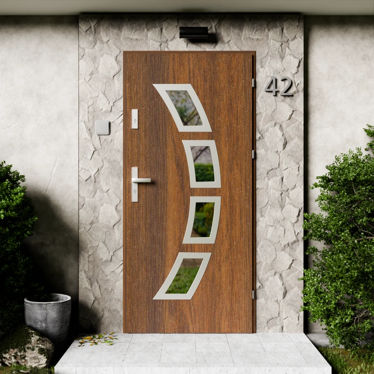 Dostępne w wielu wymiarach drzwi zewnętrzne będą idealnym wyborem nie tylko dla domów jednorodzinnych, ale także budynków wielorodzinnych, jako drzwi wejściowe zewnętrzne. Ponadczasowy design sprawdzi się zarówno w przypadku nowoczesnych nieruchomości, jak i nieco starszych obiektów, łącząc w sobie estetykę oraz niezwykłą trwałość.