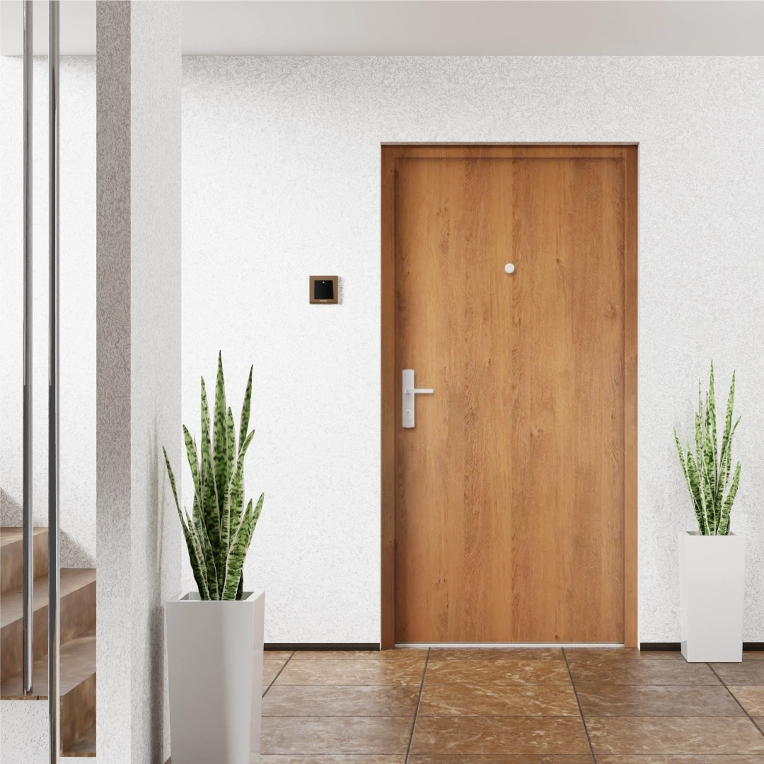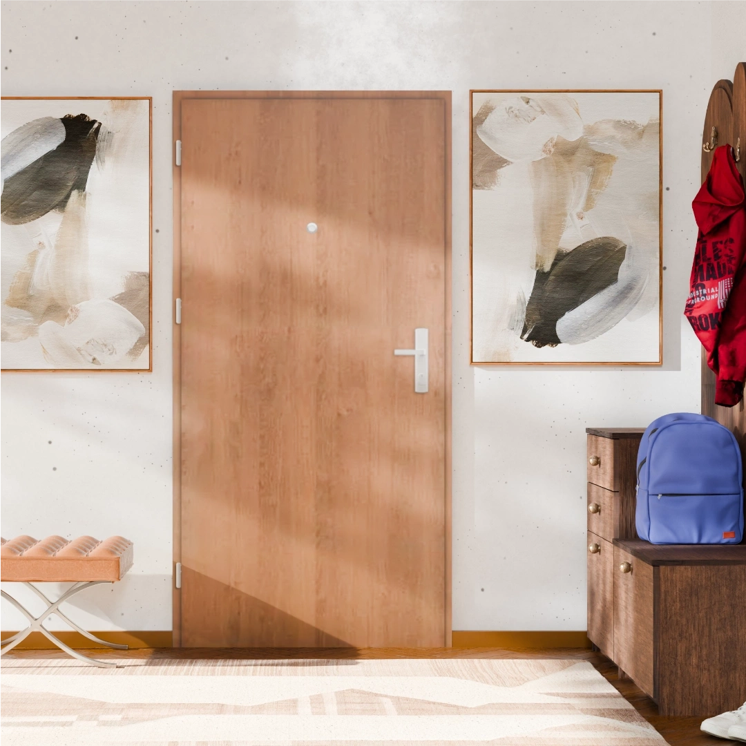 Zapomnij o hałasie z klatki schodowej! Dzięki grubości skrzydła 68 mm i wypełnieniu z akustycznej wełny mineralnej, nasze drzwi osiągają izolacyjność na poziomie 44 dB. Ta wartość w praktyce oznacza, że redukują hałas do minimum. Odgłosy rozmów, kroków na klatce zostaną skutecznie wyciszone, zapewniając Ci spokój i prywatność. Drzwi są także dymoszczelne, co zapobiega przedostawaniu się dymu i nieprzyjemnych zapachów.