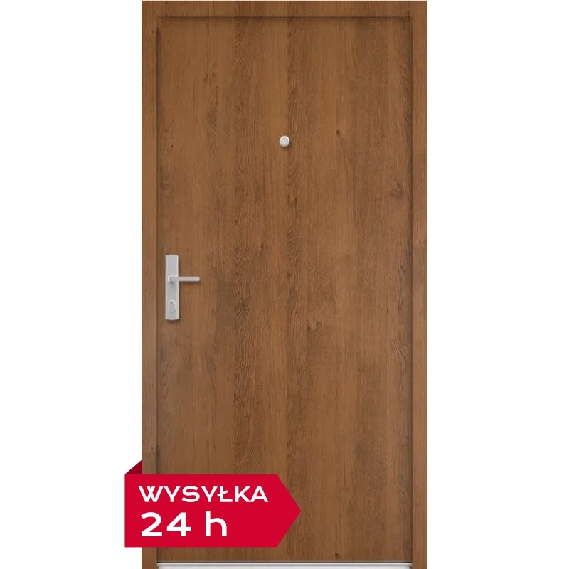 Trwałość to podstawa. Skrzydło drzwiowe jest wzmocnione ramiakiem drewnianym i pokryte obustronnie blachą stalową, pokrytą laminatem. Ościeżnica wykonana jest z grubego profilu stalowego, również pokrytego laminatem.