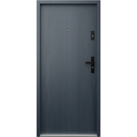 Drzwi klatkowe wejściowe do mieszkania w bloku wygłuszające 47 dB antywłamaniowe RC3 55 mm stalowe gładkie z klamką czarną antracyt drewnopodobny G00