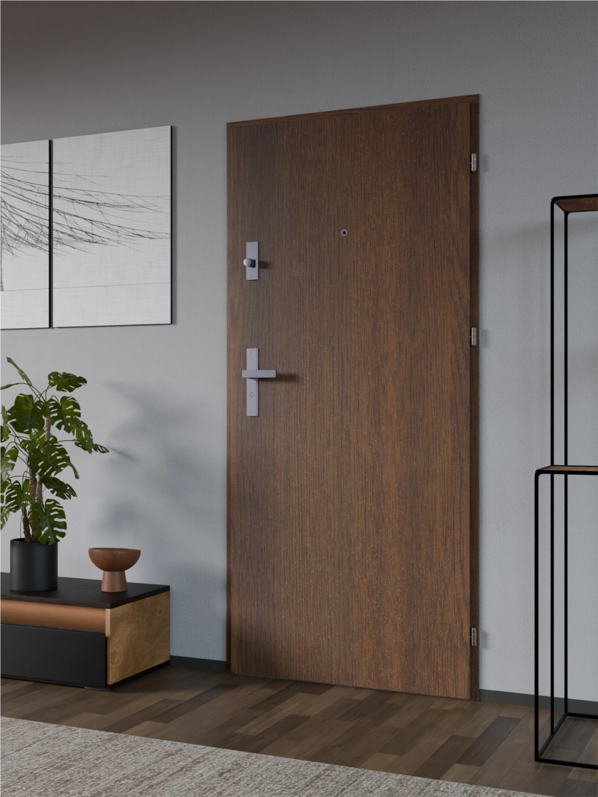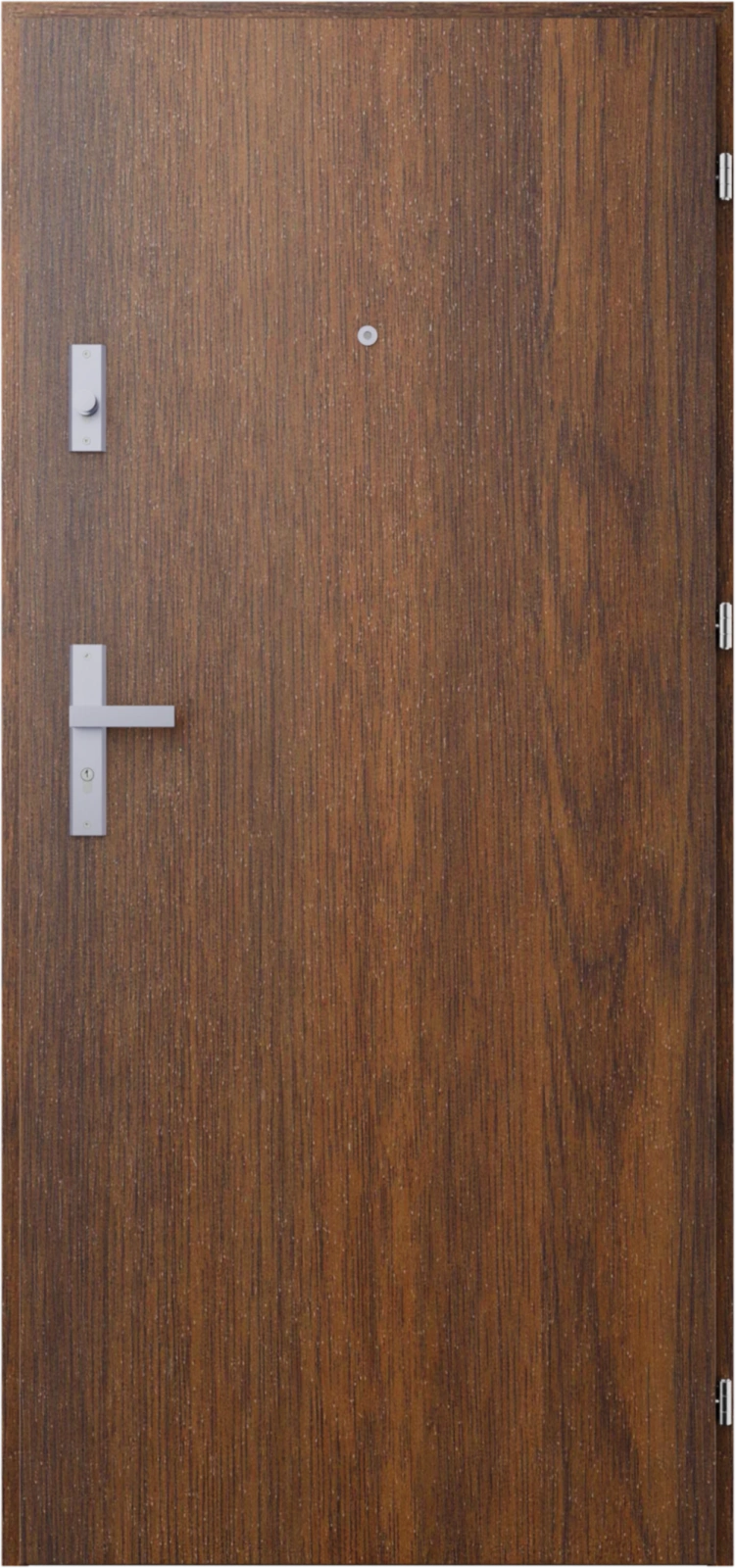 Drzwi przeciwpożarowe EI30 wewnątrzklatkowe dymoszczelne Sa S200 antywłamaniowe RC3 akustyczne 42 dB 55 mm stalowe z aplikacjami orzech A7