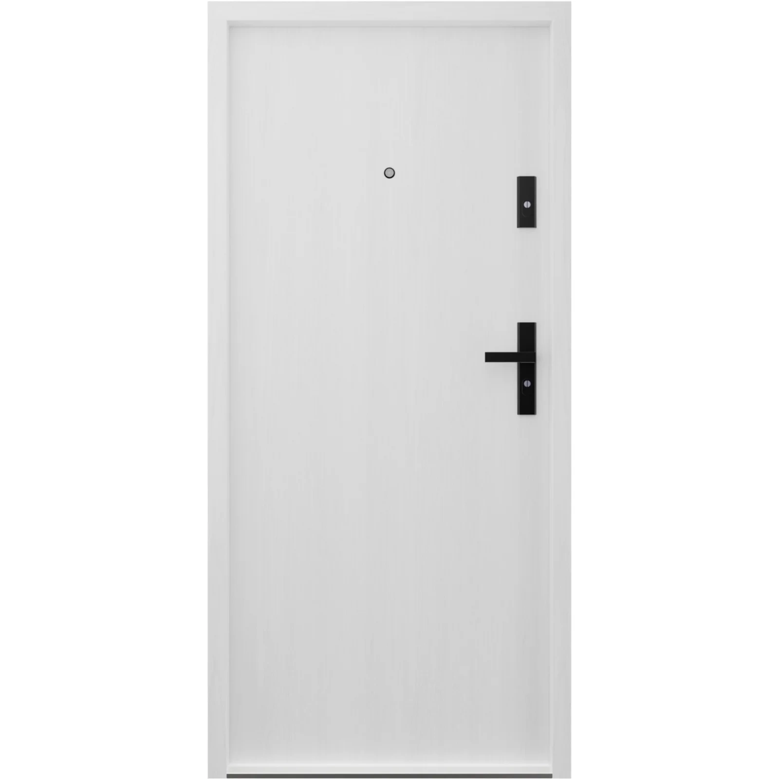 Drzwi wewnątrzklatkowe akustyczne wyciszające 47 dB z Certyfikatem antywłamaniowe RC3 55 mm stalowe gładkie z klamką czarną biały drewnopodobny G00