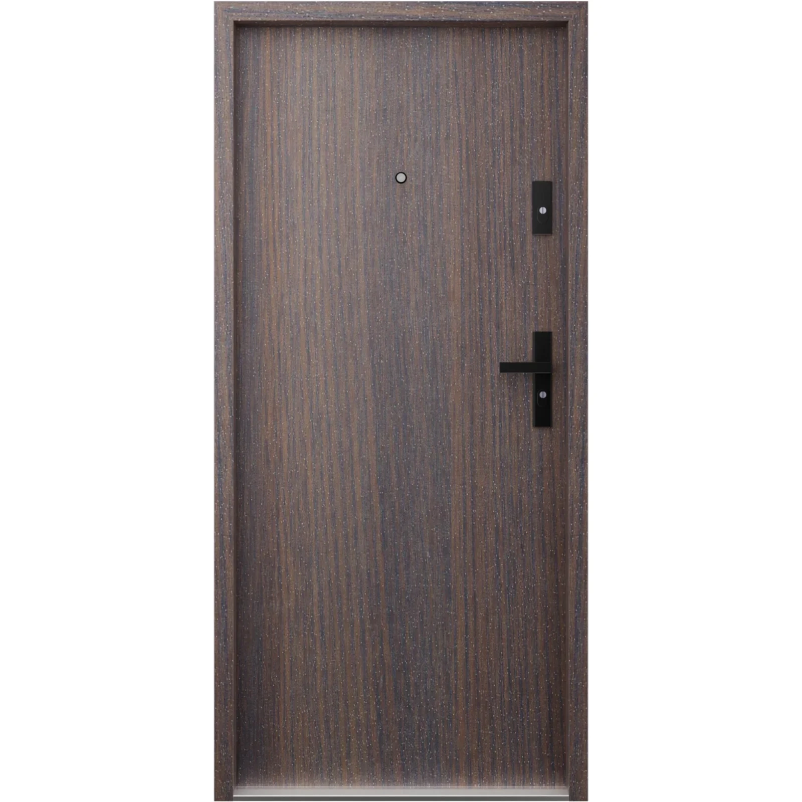 Drzwi wewnątrzklatkowe akustyczne wyciszające 47 dB z Certyfikatem antywłamaniowe RC3 55 mm stalowe gładkie z klamką czarną dąb bagienny G00