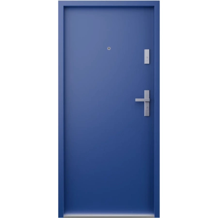 Drzwi wewnątrzklatkowe akustyczne wyciszające 47 dB z Certyfikatem antywłamaniowe RC3 55 mm stalowe gładkie z klamką inox srebrną niebieskie G00