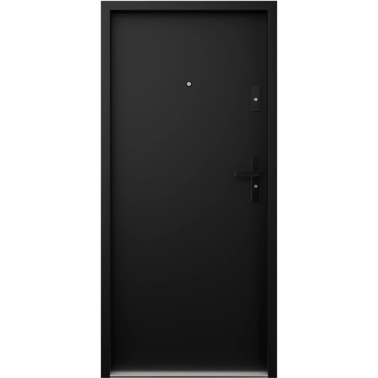 Drzwi wewnątrzklatkowe antywłamaniowe RC3 z Certyfikatem akustyczne wyciszające 47 dB 55 mm stalowe gładkie z czarną klamką czarne G00