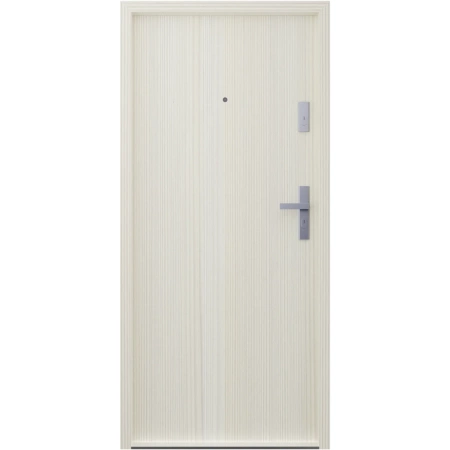 Drzwi wewnątrzklatkowe antywłamaniowe RC3 z Certyfikatem akustyczne wyciszające 47 dB 55 mm stalowe gładkie z klamką inox srebrną dąb bielony G00