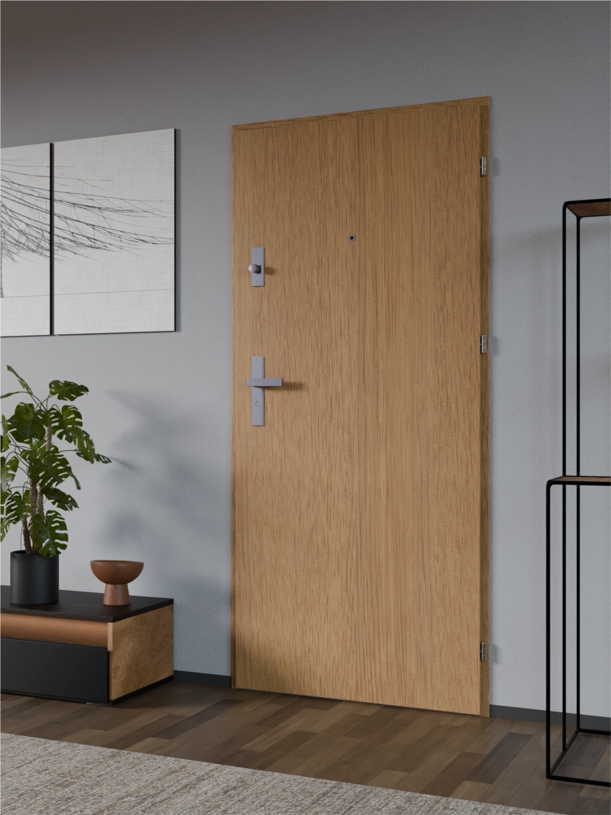 Drzwi wewnątrzklatkowe antywłamaniowe RC3 z Certyfikatem akustyczne wyciszające 47 dB 55 mm stalowe gładkie z klamką inox srebrną winchester G00