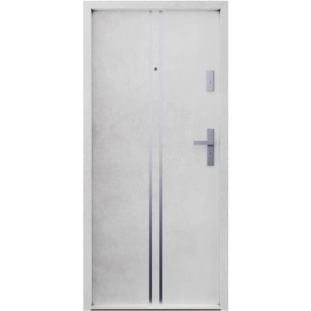 Drzwi wewnątrzklatkowe antywłamaniowe RC3 z Certyfikatem akustyczne wyciszające 47 dB 55 mm stalowe z klamką inox srebrną i aplikacjami beton A7