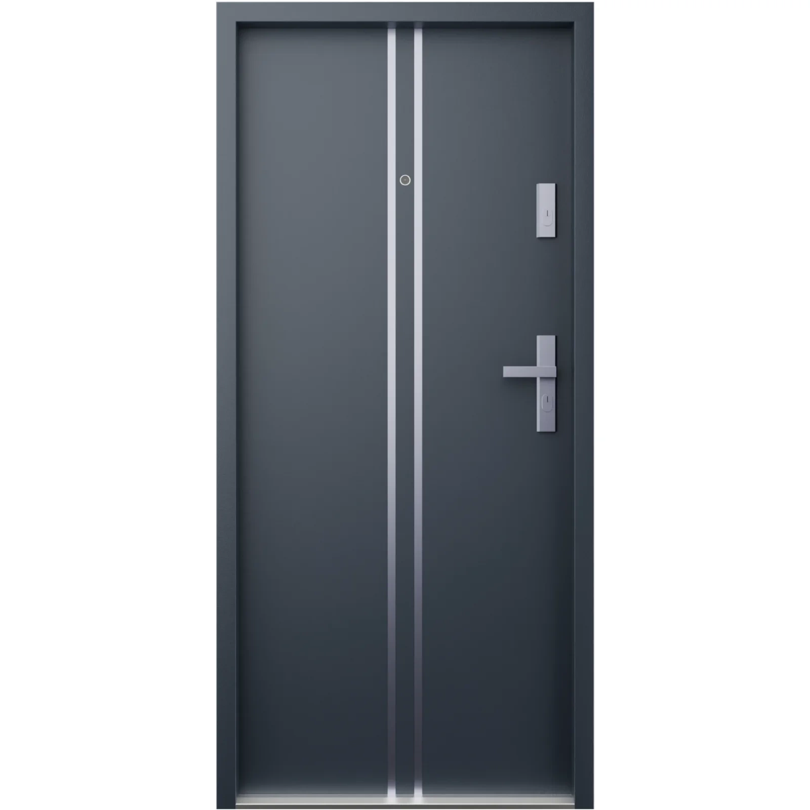 Drzwi wewnątrzklatkowe antywłamaniowe w klasie RC4 55 mm stalowe z klamką i zawiasami srebrnymi inox antracyt db703 A7