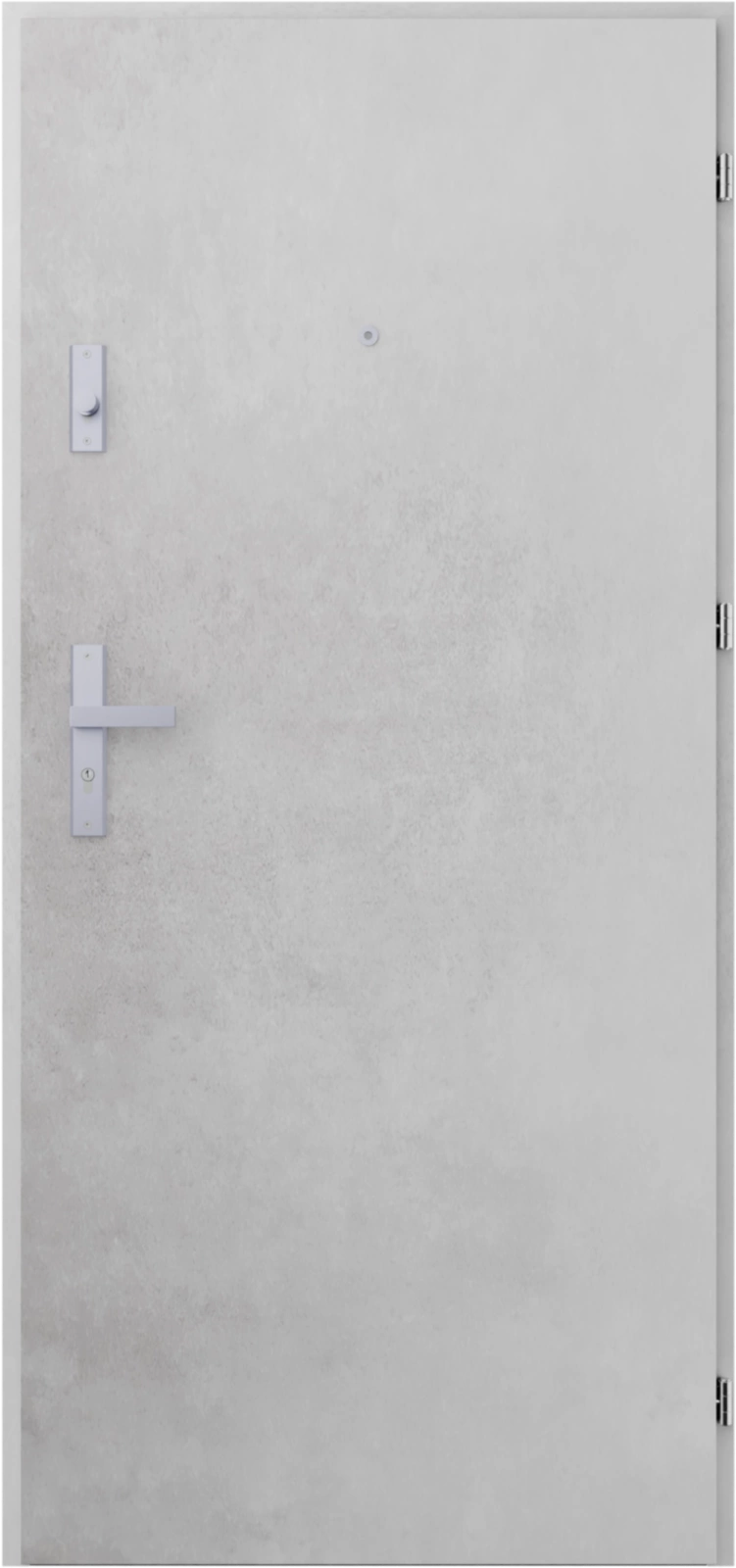 Drzwi wewnątrzklatkowe antywłamaniowe w klasie RC4 55 mm stalowe z klamką i zawiasami srebrnymi inox beton A7