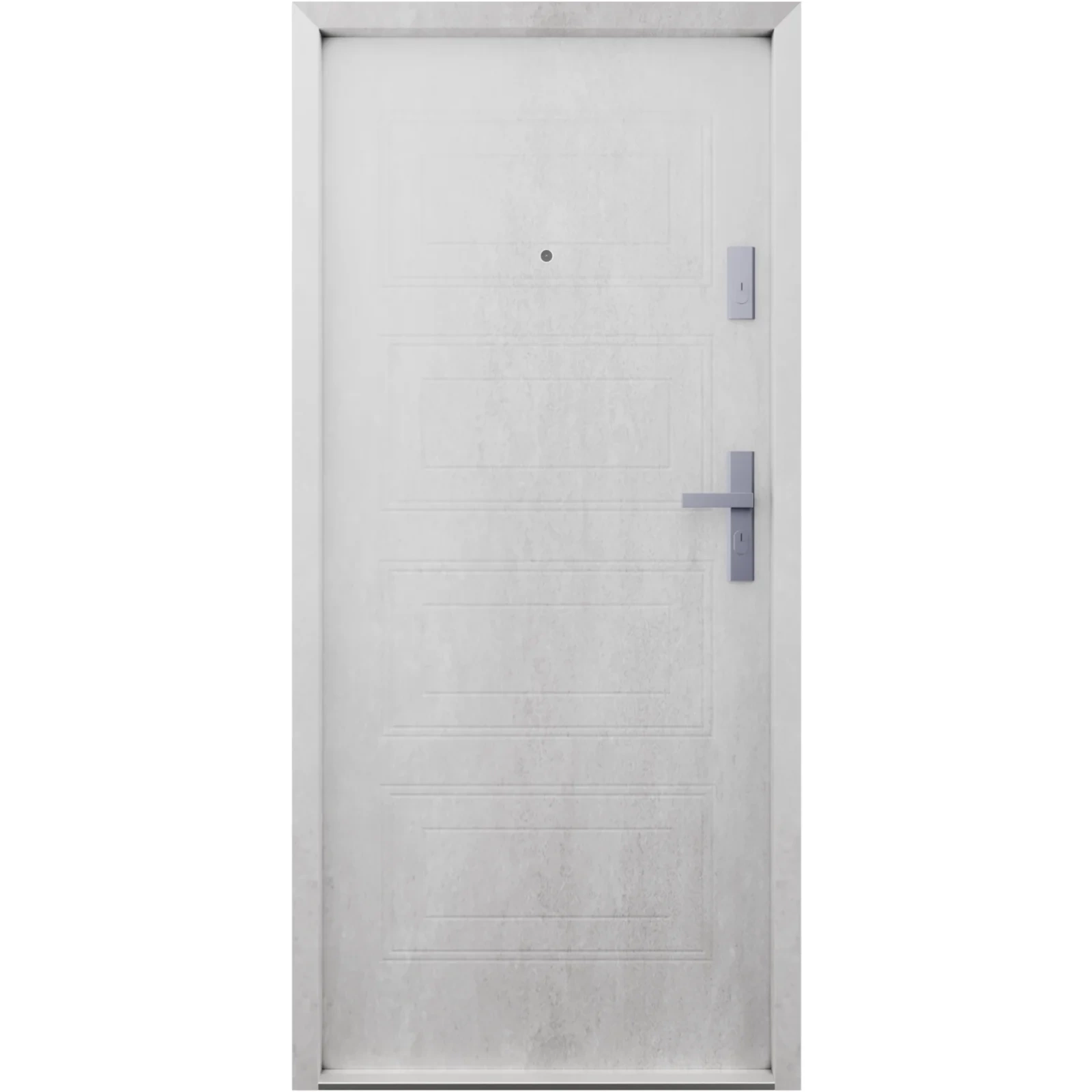 Drzwi wewnątrzklatkowe antywłamaniowe w klasie RC4 55 mm stalowe z klamką i zawiasami srebrnymi inox beton T34