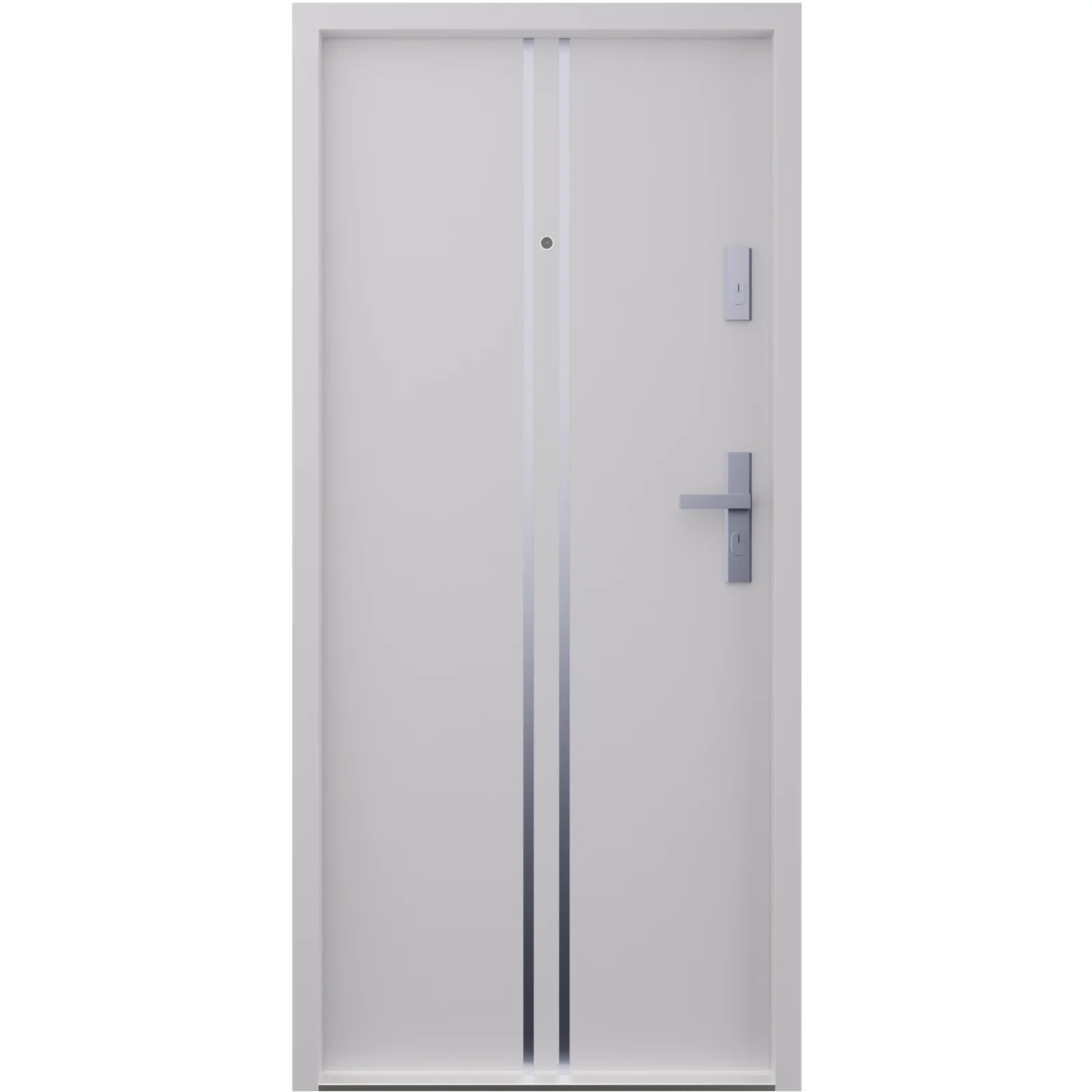 Drzwi wewnątrzklatkowe antywłamaniowe w klasie RC4 55 mm stalowe z klamką i zawiasami srebrnymi inox szare A7