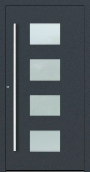 Drzwi aluminiowe wejściowe do domów jednorodzinnych oraz w zabudowie szeregowej Premium Alu 90, dostępne są w wersji jednoskrzydłowej. Drzwi można wyposażyć w doświetla i naświetle w różnych konfiguracjach ustawienia względem drzwi.