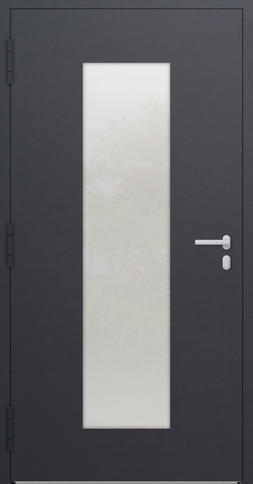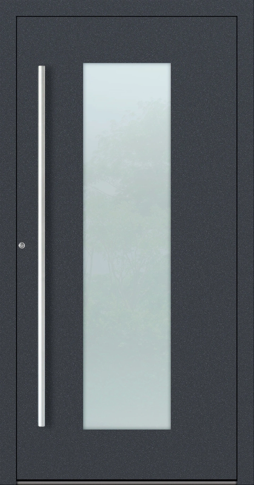 Rama i poszycie wykonane w 100% z aluminium. Drzwi są całkowicie odporne na wilgoć, słońce i odkształcenia. 3 zawiasy rolkowe (lub opcjonalnie ukryte) gwarantują płynną pracę przez dekady.