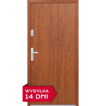 Drzwi zewnętrzne do domu stalowo aluminiowe 68 mm z okuciami inox ATU68 złoty dąb Program Czyste Powietrze M507