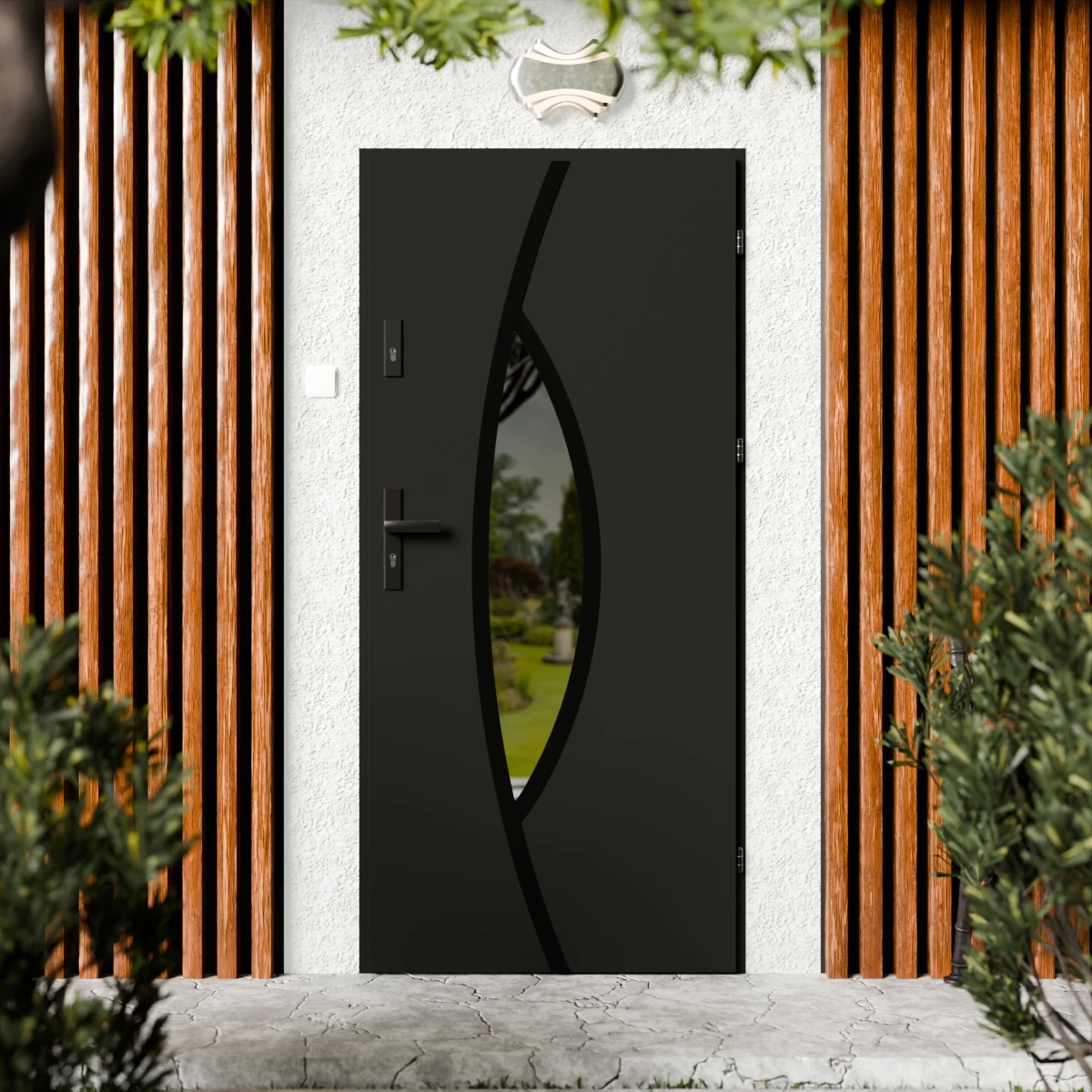 Drzwi zewnętrzne stalowe do domu Maestro Black 72mm z klamką czarną energooszczędne Ud=1.3 lustro weneckie szyba mleczna Program Czyste Powietrze