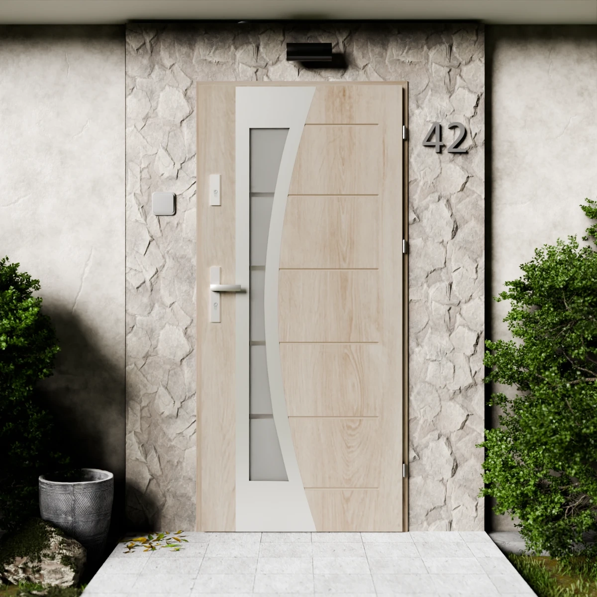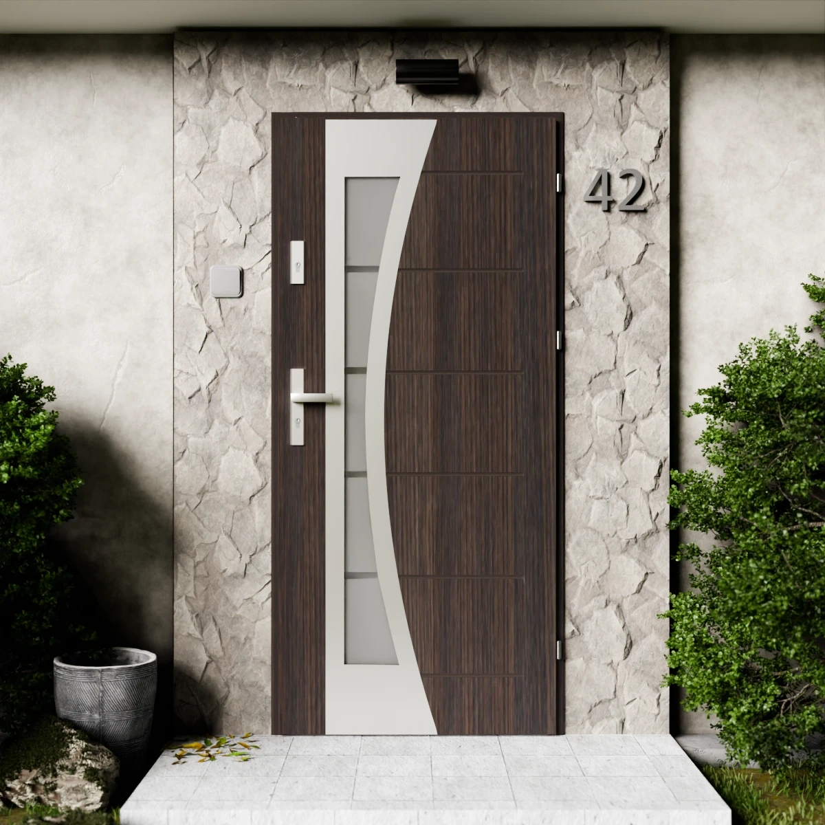 Dostępne w wielu wymiarach drzwi zewnętrzne będą idealnym wyborem nie tylko dla domów jednorodzinnych, ale także budynków wielorodzinnych, jako drzwi wejściowe zewnętrzne. Ponadczasowy design sprawdzi się zarówno w przypadku nowoczesnych nieruchomości, jak i nieco starszych obiektów, łącząc w sobie estetykę oraz niezwykłą trwałość.