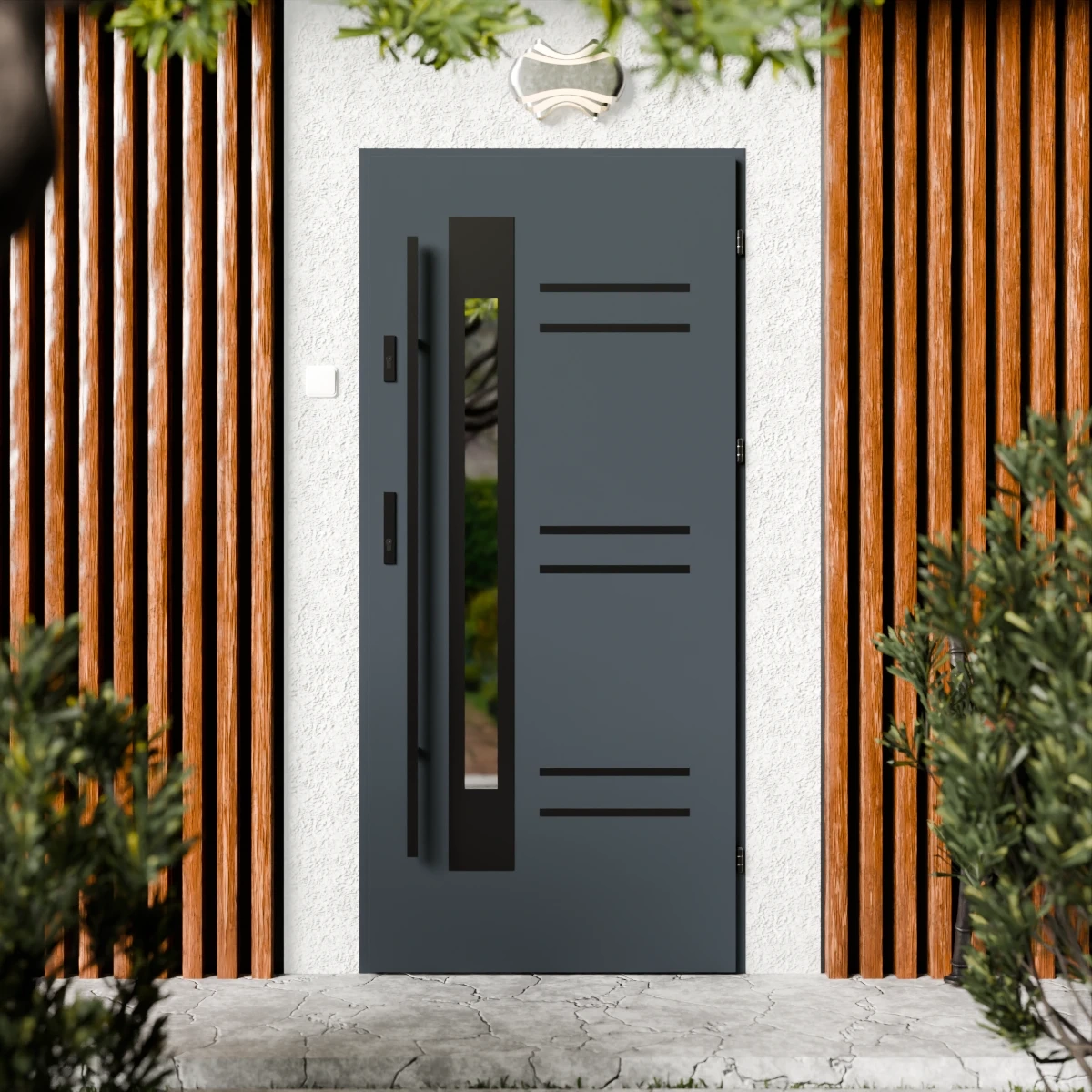 Dostępne w wielu wymiarach drzwi zewnętrzne będą idealnym wyborem nie tylko dla domów jednorodzinnych, ale także budynków wielorodzinnych, jako drzwi wejściowe zewnętrzne. Ponadczasowy design sprawdzi się zarówno w przypadku nowoczesnych nieruchomości, jak i nieco starszych obiektów, łącząc w sobie estetykę oraz niezwykłą trwałość.