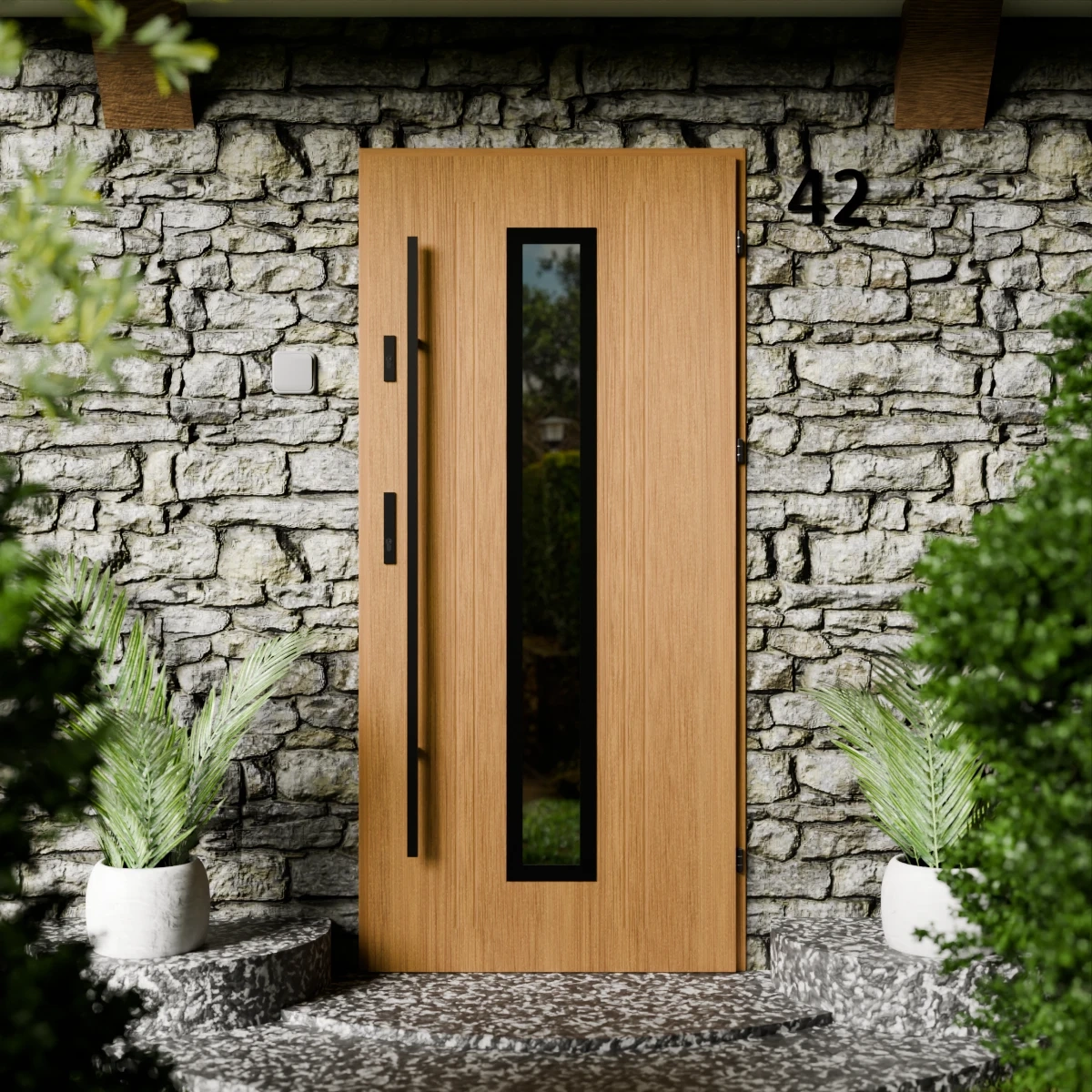 Dostępne w wielu wymiarach drzwi zewnętrzne będą idealnym wyborem nie tylko dla domów jednorodzinnych, ale także budynków wielorodzinnych, jako drzwi wejściowe zewnętrzne. Ponadczasowy design sprawdzi się zarówno w przypadku nowoczesnych nieruchomości, jak i nieco starszych obiektów, łącząc w sobie estetykę oraz niezwykłą trwałość.