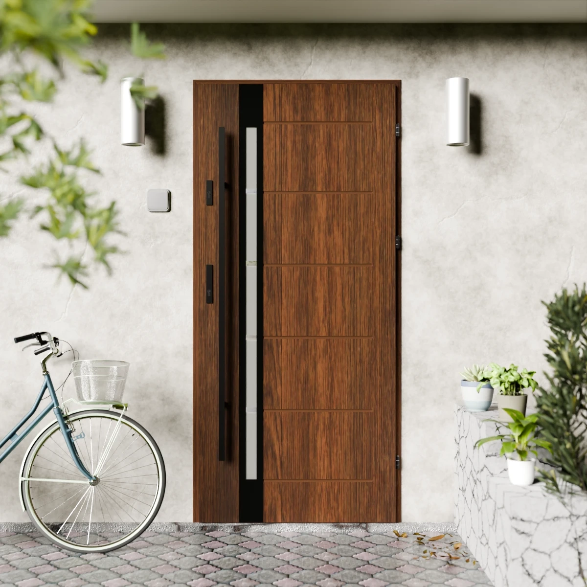 Dostępne w wielu wymiarach drzwi zewnętrzne będą idealnym wyborem nie tylko dla domów jednorodzinnych, ale także budynków wielorodzinnych, jako drzwi wejściowe zewnętrzne. Ponadczasowy design sprawdzi się zarówno w przypadku nowoczesnych nieruchomości, jak i nieco starszych obiektów, łącząc w sobie estetykę oraz niezwykłą trwałość.