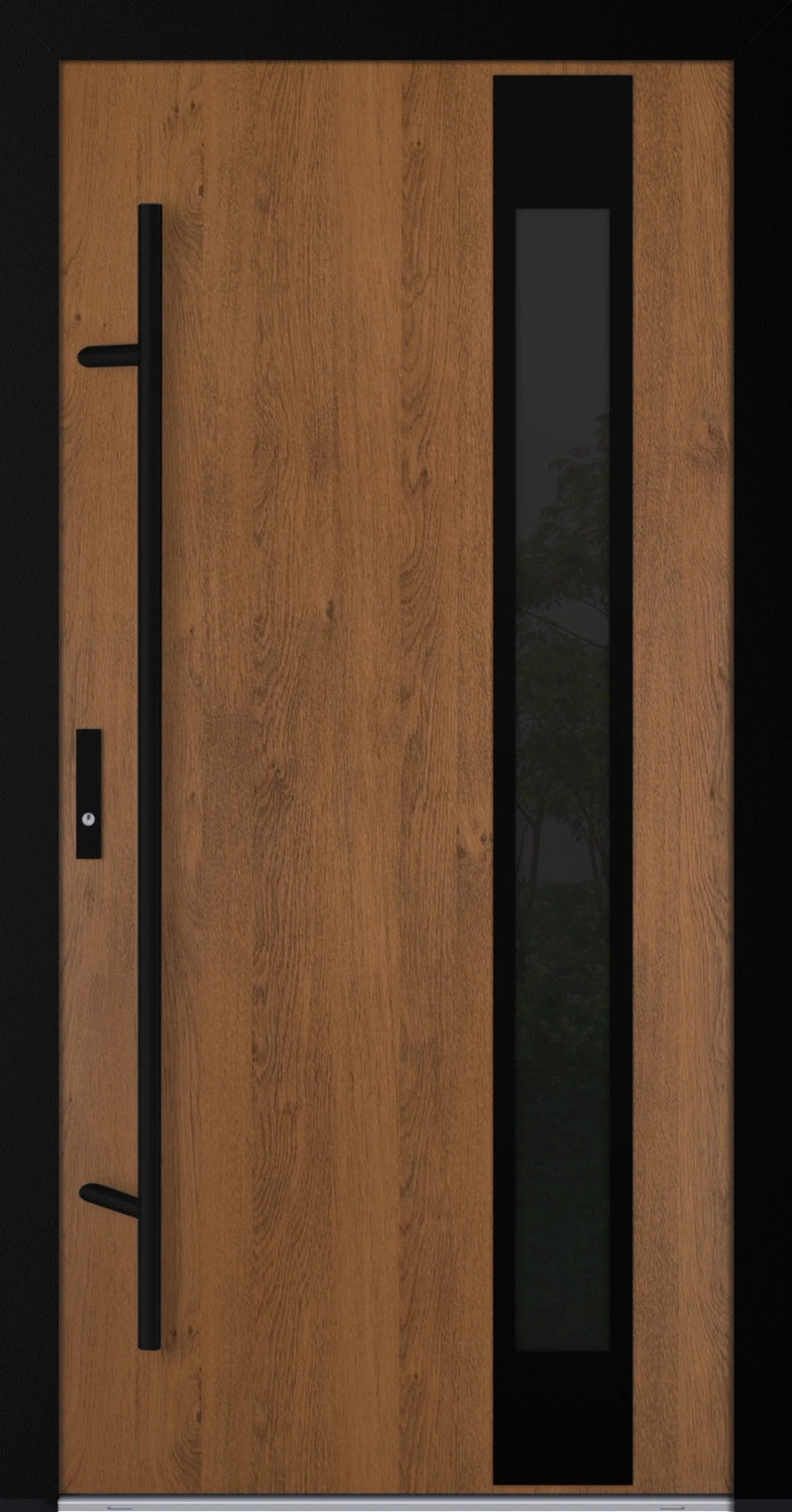 • Drzwi zewnętrzne stalowe z czarną ramą aluminiową do domów jednorodzinnych i wielorodzinnych. Dostępne w standardowych wymiarach, kilku kolorach oraz wielu modelach przeszkleń. Możliwość wyposażenia w dostawkę boczną i górną.